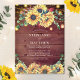 Estes convites para casamentos de cor de girassol apresentam um design de girassol de cor d'água com folhas de eucalipto, folhas de outono, frascos de pedras e luzes de cordas sobre fundo de madeira. Personalize-os com o seu texto. Produtos correspondentes disponíveis.