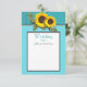 Convite de Casamento Simples Rústico Azul Madeira Dourado Girassol, Perfeito para casamentos deste ano