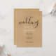 Um convite de casamento elegante com tipografia moderna e um coração dourado chic em um fundo kraft rústico. O verso apresenta um confete de corações dourados combinando em um fundo kraft rústico. Criado por Thisisnotme©