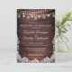 Linda madeira de celeiro escuro do país com luzes de cordas, lanternas de festas e jarras de pedras acentuadas com rendas brancas e tipografia elegante de scripts. Todo o texto é editável para mudar o texto para o ajustado das suas necessidades. Entre em contato com o designer por meio do Zazzle Chat ou makeitaboutyoustore@gmail.com se você quiser que este design seja modificado, em outro produto ou em itens de coordenação.