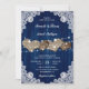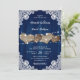 Esses convites românticos de casamento rústicos com corações de burlap contra um fundo de madeira e renda adornados com luzes de cordas são perfeitos para convidar seus convidados para sua festa de casamento de campo/celeiro azul-marinho.