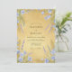 Este design apresenta um fundo quente e dourado ocre que evoca um campo ensolarado. Delicados ramos de lavanda roxa e flores de linho azul suave são sobrepostos com gramíneas secas e finas para um visual natural. A paleta de amarelo mostarda e pervinca cria uma estética serena e rústica, perfeita para uma cerimônia ao ar livre no campo.