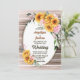 Convide seus amigos e entes queridos para o seu casamento com este convite rústico com girassóis vibrantes, rosas cor-de-rosa delicadas e torres de galhos de eucalipto moldando o texto para ajudar a compartilhar sua alegria no seu dia especial.