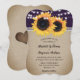 Este convite de casamento floral de país rústico, com girassóis em uma burlap e um fundo de renda enfeitado com luzes de cordas é perfeito para convidar seus convidados para o seu país rústico púrpura, jardim, quintal ou festa de casamento de celeiro inspirados pelos girassóis.