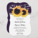Este convite de casamento floral de país rústico, com girassóis em uma burlap e um fundo de renda enfeitado com luzes de cordas é perfeito para convidar seus convidados para o seu país rústico púrpura, jardim, quintal ou festa de casamento de celeiro inspirados pelos girassóis.
