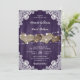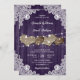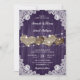 Estes convites românticos de casamento, com corações de burlap, com um fundo de madeira e renda adornados com luzes de cordas são perfeitos para convidar seus convidados para sua festa de casamento rústica/casinha roxa.