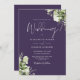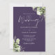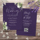 Este elegante verde botânico roxo deixa convite para casamento pode ser personalizado com seus detalhes em tipografia moderna com seus detalhes no site do casamento e seu código QR no verso. Projetado por Thisnotme©