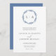 Convite de casamento bonito, simples e rústico com coroa azul empoeirada e iniciais. Totalmente personalizável com nomes, datas, local e cores para corresponder ao seu tema de casamento.