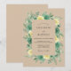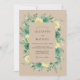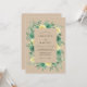 Este design apresenta um fundo bege quente sobreposto a um rico arranjo floral em aquarela. Rosas amarelo pálido delicadas e flores verde profundo estão aninhadas entre uma variedade de folhagens verde sálvia e folhas de eucalipto. A paleta de cores terrosas evoca uma atmosfera serena e natural perfeita para uma cerimônia ao ar livre sazonal. Detalhes botânicos pintados à mão criam um sentimento sofisticado, mas orgânico.