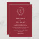 Uma escolha saborosa e clássica em convites para casamento, esta design transmite uma simples elegância em seu layout de texto. Uma simples coroa aberta de folhas esboçadas envolve o monograma inicial da noiva e do noivo. O elegante e simples modelo de texto está pronto para personalizar com seus detalhes de casamento. Este convite é uma escolha versátil para casamentos em qualquer estação do ano e para qualquer local de casamento, seja uma cerimônia religiosa solene ou um caso de tipo secular em um salão de banquete, adega, museu, restaurante, clube privado ou um casamento rústico fora da natureza. Este convite está disponível em diversos estilos de forma (mostrados aqui em vermelho rústico), assim como em vários tipos e pesos de papel diferentes.