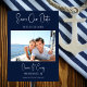Um Casamento Salva a Data Tema do Marinho Náutico de Foto em Marinho Escuro e Branco. Para personalizar, simplesmente insira sua imagem de casal favorita em nosso modelo fácil. Clique em AJUSTADO e verifique se ele está centrado na página. Em seguida, insira seu texto em nosso modelo fácil, substituindo os nomes de amostra, a data de casamento e o local.