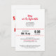 Grandes cartas de convite Dane com imagens engraçadas em preto e vermelho.