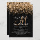 Elegante design de casamento "Salve a Data" com efeito romântico de Estrelas Cadentes douradas com céu estrelado noturno em fundo preto e nomes personalizados e texto de data. Impressione sua família e amigos com este design moderno e sofisticado. Totalmente personalizável! Fácil de usar e fácil de personalizar. Compre hoje!