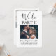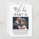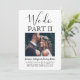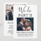 Convide familiares e amigos para testemunharem você dizer "sim" novamente com um elegante convite de casamento moderno com 2 fotos para sequência. Todas as palavras são simples de personalizar, incluindo a citação que diz "nós fazemos parte II". Personalize-o para qualquer tipo de celebração de casamento, como uma cerimônia de renovação de votos, recepção de 1º aniversário, festa pós-fuga romântica, hora do coquetel ou jantar. Personalize com os detalhes de sua escolha, incluindo data de casamento, RSVP, código de vestimenta, site, etc. (DICA DE COLOCAÇÃO DE IMAGEM: Uma maneira fácil de centralizar uma foto exatamente como você deseja é cortá-la antes de fazer o upload para o site da Zazzle.) O design moderno minimalista preto e branco apresenta duas fotos do casal recém-casado, caligrafia de script manuscrita trendy e tipografia estilo máquina de escrever chic. Quer você tenha fugido devido à pandemia de covid ou tenha reduzido para uma minimonial ou micro-casamento menor e mais íntimo, a