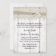 Convite de casamento rápido, com gráficos de um fundo de madeira lavada em branco. O lugar de aparência crochetada de marfim, no topo, tem uma fita de filamento duplo de marfim presa em um nó. Personalize o texto em preto para seu dia especial. Produtos correspondentes disponíveis.
