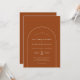 Este Simples design de Convite de Terraço de Boho Terracotta apresenta uma sofisticada paleta de marfim neutro emparelhada com lindíssimas opções de mistura e fósforos de terracota, verde de sábio e ameixa. A elegância subestimada da simples tipografia e arcos gentis cria uma estética calorosa e polida com o estilo clássico minimalista. As opções de cores complementares de coordenação oferecem uma ampla variedade de pesquisas para todos os gostos. Perfeitamente adequado para um belo casamento formal casual ou vintage, chá de panela chic, ou outra ocasião especial. Tal como acontece com todos os nossos designs, se tiverem perguntas ou pedidos especiais, por favor, perguntem.