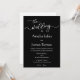 Anuncie seu dia especial com este elegante convite de casamento, com seus detalhes em elegantes caracteres brancos e sofisticados acentos de script de caligrafia em um fundo preto personalizável. Ideal para casamentos modernos formais e informais, esse convite combina simplicidade com um toque de classe.
