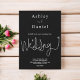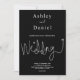 Este elegante convite de casamento preto e branco é perfeito para um casamento moderno. o simples design apresenta uma caligrafia branca elegante num fundo preto.