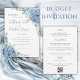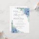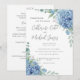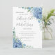 Hortênsias azuis em um fundo branco. Um convite de casamento perfeito para qualquer estação. As hortênsias em aquarela são simplesmente lindas. Elegante e sofisticado. Adicione todos os detalhes no verso deste adorável convite.