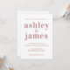 O convite para casamento simples e chic contém rosa empoeirada, na moda, elegante e moderna tipografia de fundo branco. Basta adicionar os detalhes do seu casamento. Desenvolvido exclusivamente para você pelo Happy Dolphin Studio. Se precisar de ajuda ou produtos correspondentes, entre em contato conosco em happydolphinstudio@outlook.com. Estamos felizes em ajudá-lo a fazer seu casamento o dia mais bonito!