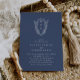 Este simples convite de casamento azul-escuro botânico moderno da Coleção Daphne é perfeito para um casamento tradicional. O simples, porém clássico, design apresenta um elegante e eterno monograma da crista real com flores e verde em torno das iniciais do casal.