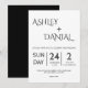 Faça uma declaração com este eterno e o convite clássico de casamento preto e branco. A tipografia branca em negrito sobre fundo preto cria um contraste impressionante e um aspecto único. Perfeito para casamentos, noivados, e outras ocasiões especiais, este convite vai causar uma impressão duradoura. O design simples, mas elegante, certamente se destacará entre os outros.