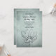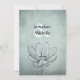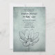 Este simples convite para o casamento mostra um desenho de uma flor de lótus num fundo de terra azul empoeirado.