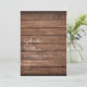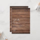 Convite de casamento rústico simples com os nomes do casal feliz em uma elegante caligrafia acima dos detalhes especiais do casamento em um fundo de madeira rústica. O verso apresenta um fundo de madeira rústica correspondente. Criado por Thisisnotme©