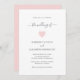 Convite para casamento moderno com um simples design com um coração cor-de-rosa fofo junto com "o casamento de" em um roteiro elegante com supressões. A parte de trás é uma sombra de cor-de-rosa. Este divertido Convite de Casamento é excelente para um casamento casual na primavera.