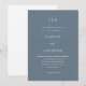 Bonito e empoeirado convite de casamento azul com simples parte de trás branca do cartão. Este convite elegante é uma forma chique de informar os hóspedes sobre a sua próxima celebração de casamento, e apresenta caligrafia moderna.