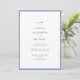 Está procurando uma maneira simples e elegante de convidar seus convidados para o seu casamento? Não olhe mais do que este adorável convite branco, empoeirado, de cor azul, com a tipografia moderna. Esta design minimalista é perfeita para casais que querem um convite de casamento de chic e na moda que certamente impressiona seus convidados. Além disso, o design monograma acrescenta um toque pessoal que tornará seus convites ainda mais especiais. Faça o pedido agora e você poderá criar belos convites de casamento personalizados que certamente vão dar o tom para o seu grande dia.