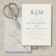 Convites Casamento Simples de Monograma Azul Verde Brilhant