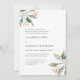 Simples e elegante, com uma pop de cor subestimada, este adorável convite para o casamento tem um olhar inspirado na natureza com cinzas verdes e minúsculos botões cor de pêssego em matizes moles de cor d'água em cantos opostos do design. O texto modelo inclui uma redação formal com os nomes dos pais da noiva e do noivo, juntamente com os detalhes do casamento. Este texto pode ser personalizado para utilizar a sua redação preferida. Este convite é uma boa escolha para casamentos de primavera ou de verão.