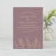 Simples Mínimo de Roxo Plumado e Dourado Deixa Convite De Casamento. Imprime estigmaticamente seus convidados de casamento com este simples, mas elegante, roxo escuro com folhas de ouro convite de casamento, com uma série de lindas folhas de ouro de flor silvestre colocadas sobre um fundo de ameixa moderno. Este convite de casamento dá uma sensação moderna e minimalista, perfeita para qualquer casamento botânico moderno. Este convite para casamento mínimo, púrpura escura e dourado irá dar o tom para qualquer cenário de casamento rústico e subestimado, rodeado por folhas brancas ou ouros delicadas ou flores silvestres, e o decor de casamento de ameixa ou ouro correspondente. Uma adição perfeita a qualquer celebração de casamento bestial. O Coletivo de Domingo © por Rachel Hannah Gee