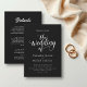 Este elegante convite de casamento preto e branco é perfeito para um casamento moderno. O simples design apresenta uma caligrafia branca elegante sobre um fundo preto. O cartão de convite inclui os detalhes do casamento no verso, em vez de pagar um cartão separado.