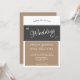 Convite Simples De Casamento De Script Moderno Elegante. Convite de casamento simples e elegante em cores pretas, brancas e castanhas com uma escrita branca de tendência. Personalize o cartão com seus dados.