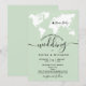 Planejando o casamento em um destino romântico? Convide seus convidados com este convite moderno simples com um mapa-múndi e seu destino personalizado marcado com o coração móvel.
