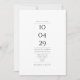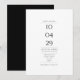 Um design moderno com a data especial e detalhes do casamento em tipografia clássica e sofisticada sobre um fundo branco. Criado por Thisisnotme©