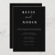 Inline | Convite Simples Moderno para Casamento Bonito convite minimalista para casamento com seu nome escrito em letra clássica com letras acentuadas modernas escritas à mão. Personalize-o com seus detalhes de casamento abaixo. A nossa pintura de Cinza faz uma declaração clássica com letras brancas sobre um fundo preto suave