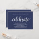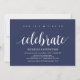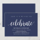 Agora é hora de celebrar, convite de recepção de casamento simples. Este convite temático de casamento simples rústico em azul marinho (você pode personalizar todas as cores) é perfeito para a recepção do seu casamento e festa de celebração pós-casamento. Adicione seus detalhes na fonte / letra correspondente.