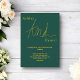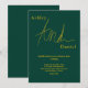 Este elegante convite de casamento verde e dourado é perfeito para um casamento moderno. o simples design apresenta uma elegante caligrafia de ouro num fundo verde.