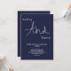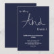 Este elegante convite de casamento azul marinho é perfeito para um casamento moderno. o simples design apresenta uma caligrafia branca elegante num fundo azul.