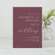 Este convite de casamento simples e elegante apresenta a palavra "casamento" em letra cursiva branca estilosa. Personalize-o com os nomes do casal em letras maiúsculas serifadas brancas (unidos pela palavra "e" em letra cursiva que combina com "casamento") e o texto restante em itálico branco minúsculo em um fundo burgundy.
