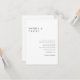 Este convite de casamento preto e branco reflete a elegância atemporal da sua história de amor. Com um design minimalista e clássico, transmite lindamente a alegria e o romance do seu dia especial. Perfeito para casais que procuram uma maneira acessível, mas elegante, de convidar os entes queridos para celebrar um momento que guardarão para sempre.