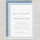 O Convite Elegante e Trendy Wedding apresenta um simples design minimalista contemporâneo com uma dupla borda de quadros em cor azul empoeirada sobre um fundo branco nítido. A formulação tradicional proporciona sofisticação eterno mas moderna. Personalize o design de casamento com seus detalhes em letras azuis e guião. A parte traseira da placa combina em azul sólido empoeirado.