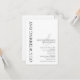 Apresentando este Convite para o Casamento de Elegância Moderna - uma mistura chique de simplicidade e sofisticação talhada para sua celebração elegante a preto e branco. O design minimalista, com fonte contemporânea, exude o encanto moderno. O esquema de cores preto e branco cria um impacto visual impressionante, definindo o palco para um caso de eterno. Feito com estoque de cartolina de alta qualidade, cada convite é um prazer táctil e visual, oferecendo um vislumbre da refinada atmosfera de seu dia especial. Explore a coleção para personalizar seu pacote com adições opcionais para garantir que cada detalhe reflita seu estilo exclusivo. Encomendar este Convite para Casamento de Elegância Moderna hoje e dar o tom para um casamento que combina sem problemas o talento moderno com a sofisticação do eterno.