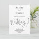 Este elegante convite de casamento preto e branco é perfeito para um casamento moderno. o simples design apresenta uma caligrafia negra elegante em um fundo branco.