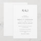 convite de casamento minimalista no fundo e no branco usando a fonte luxuosa para iniciais e detalhes monogramas.