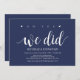 oh sim, nós fizemos, cartão de convite para recepção de casamento simples. Este cartão de convite temático de casamento simples azul naval rústico (você pode personalizar todas as cores) é perfeito para a recepção do seu casamento e festa de celebração pós-casamento. Adicione seus detalhes na fonte / letra correspondente.