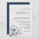 O convite cristão para o casamento retrata uma moderna e tradicional ilustração floral azul desenhada à mão de uma rosa selvagem com um fundo de cinza de luz. Ele apresenta Bíblia inspiradora Verse, "os dois se tornarão um." Se houver algo que você não veja ou que gostaria de mudar, use o botão Chat nesta página para entrar em contato comigo.